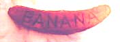 バナナの文字が浮き文字でなくって彫り文字 と言うところが変わってます。カステラも餡もパサパサ系で日持ちはしそうです。