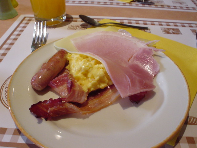 | 朝飯はアメリカンブレックファースト! ついつい取りすぎてしまう! |