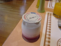 | どこかのHPでウマイって書いてあったダノン! まさか初日から巡り会えるとは・・! 日本のヨーグルトより旨い!! しかし、これから毎日の朝食で巡り会えた (*_*) |