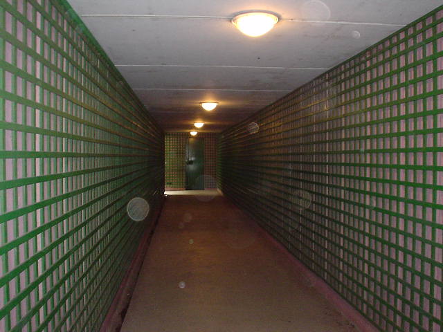 | 眠蓮の池に向かう地下道にもモネカラーのピンクと緑。 (注)すみませんきれいに写りませんでした。 |
