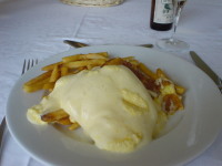 | 名物のオムレツ??とフライドポテト。 焼けてませんって言うかこういうモノかぁ? 名古屋名物味噌煮込みうどんも他の地方のヒトが食べると 生煮えって思う方が普通だからなぁ・・。 旨くは無いです。名物として意地で作ってる感じ。 |