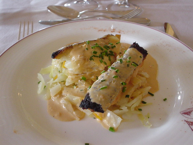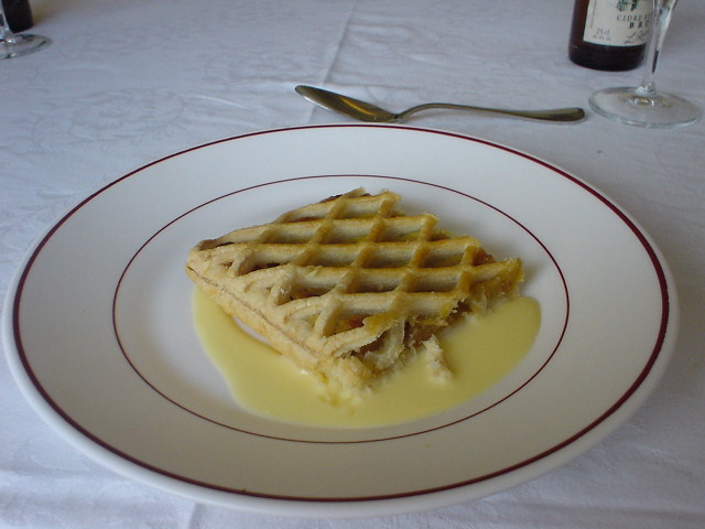 | 最後にパイ。 ホークしか残ってないがフランスではデザートではナイフを使わないのか?? 食べず辛かったがサラダ&オムレツのポイントがかなり低かったので大変旨い! |