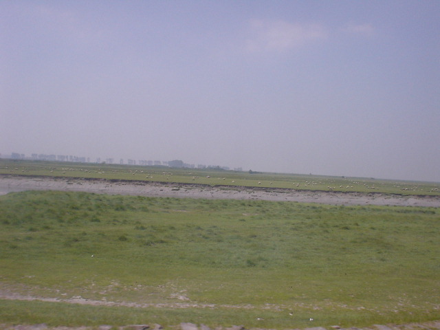 | 白い点々としたのはプレ・サレを食べる羊です。 日本人は羊がNGなヒトが多いからツアーでは羊は出ないそうです。 食べたかったよ羊さん! |