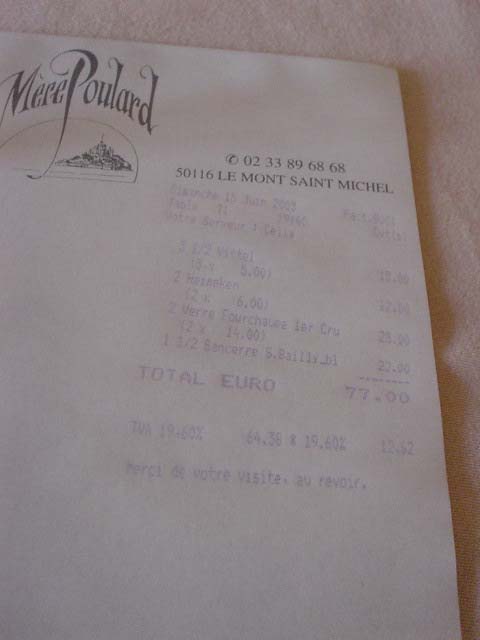 | お泊まりのラ・メール・プーラールはモンサンミッシェル名物のオムレツ屋さんです。 たぶんこの島では高級はお宿だと思う。 |