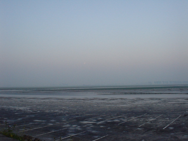 | もうちょっと沖に島があります。 そこまで、干潟を利用して巡礼者が歩いていきます。 |