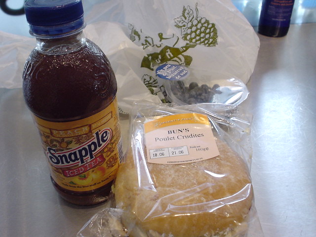 | デパート内のサンドイッチスタンドでバンズとブルーベリーと紅茶。 | |