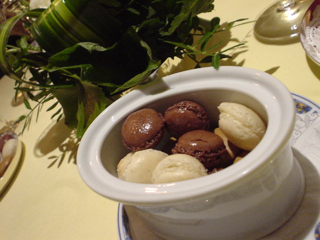 | 小菓子でますはマカロン3種類。 初めてマカロンが旨いと思ったよ。 |