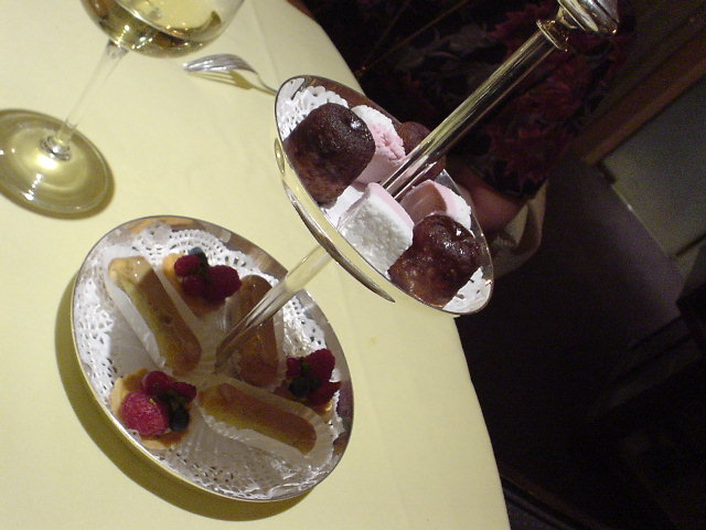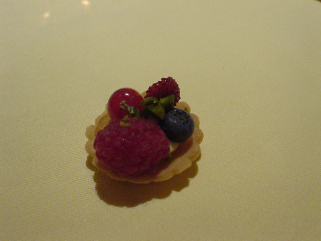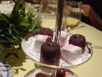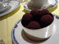 | 締めはトリュフ・・・やっとの思いで1つだけ口に運ぶ。 旨いけどねぇ・・・甘いモノのフルコースってのも辛い。 マカロンの時点でお茶かコーヒーが欲しい! |
