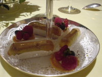 | つづく小菓子は上段にカヌレ、マシュマロ。 | |