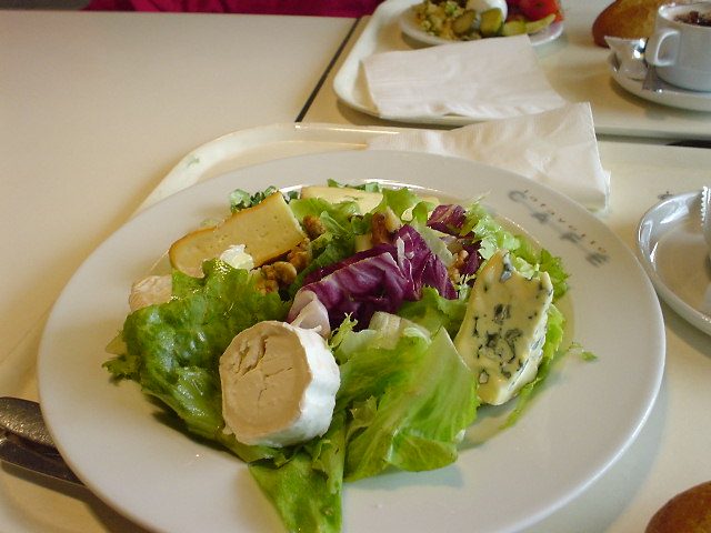 | ラファイエット・グルメで少し買い物をする。 bayonneの生ハムとかを買いました 生ハムは日本へ持ち込み禁止なのでどうなるだろうか? Tさんと待ち合わせして最上階のカフェティリアでランチ。 私はチー盛りサラダ。 シェーブル・白カビ・青カビ・ウォッシュがのってます。 |