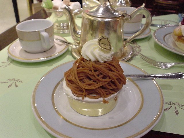 | プランタンへ移動してladureeでケーキタイム。 Tさんはこのケーキを |