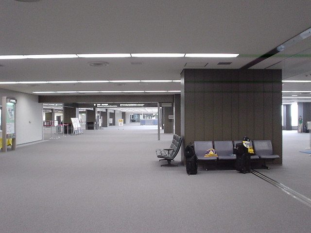 | 通路側の席も確保できました。 5月23日に屋根が崩落したターミナルのコトを聞いたら。 未だに放置状態で立ち入り禁止らしい。 |