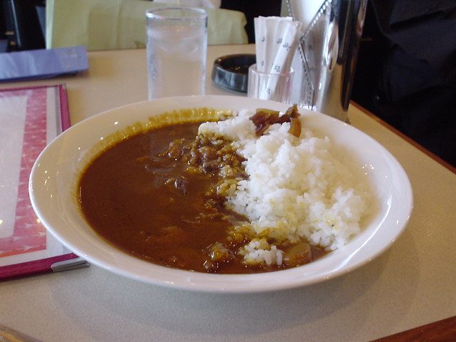 | 帰国したらカレーも食べたくなる。 (機内のはNG) YahooCafe隣に2件有るCafeの安い方の店のカレー を食べる。 去年食べた高い方の店の方が旨かった。 |